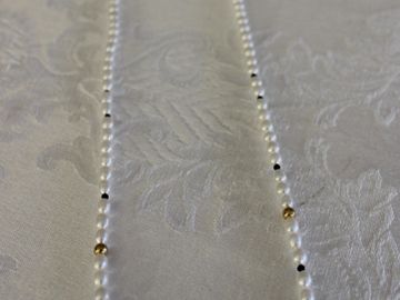 Necklace made of fresh water pearls, sapphires and 14K gold beads and findings.$125.00