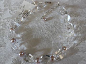 Baroque quartz crystal with large fresh water pearls and sterling silver. $88.00